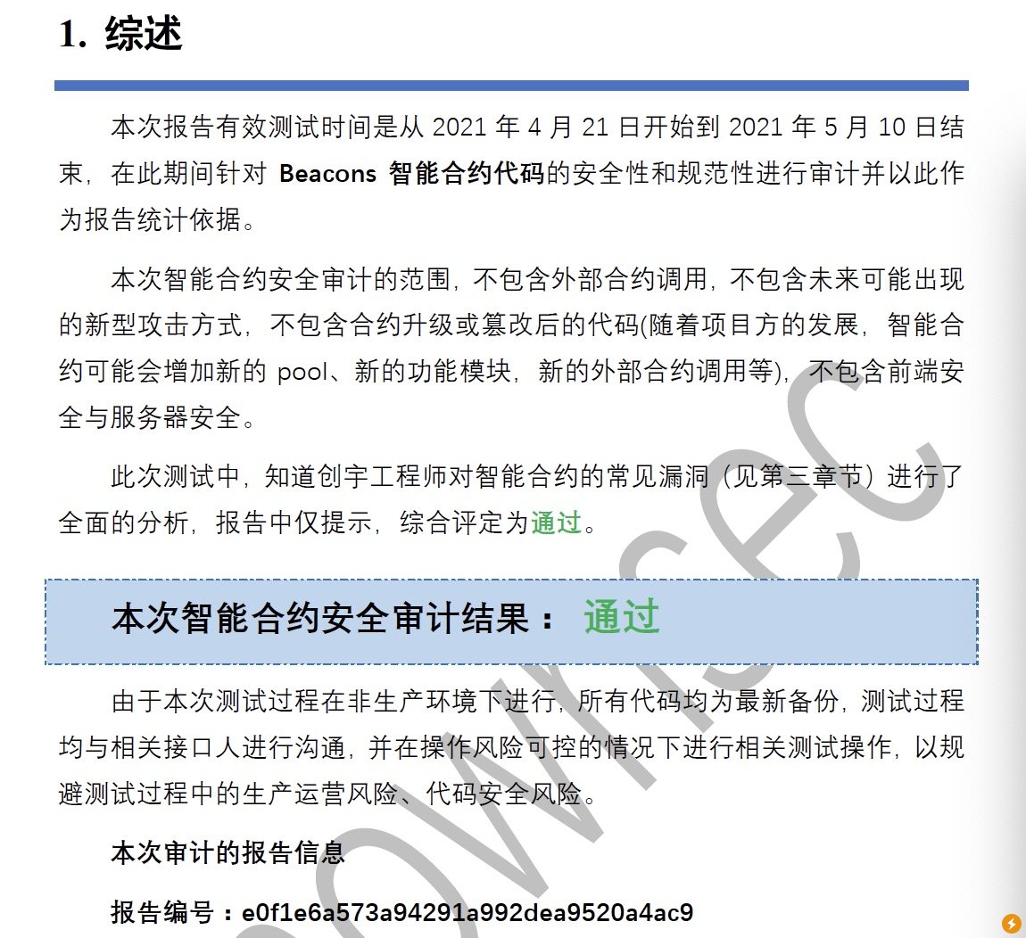 Beacons多策略挖矿平台通过国内权威安全公司——知道创宇团队的审计