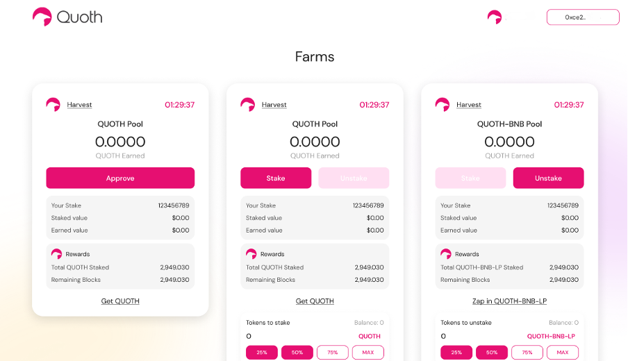 QUOTH持有者有机会通过质押代币为网络提供流动性。成为流动性提供者后,代币持有者可以获得额外的QUOTH代币奖励。