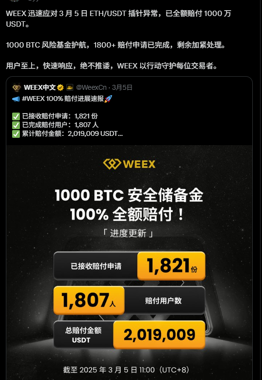 在极端行情或系统故障中,用户最关心的是平台的处理机制。WEEX唯客交易所曾在一次系统交易对异常中主动赔付用户近千万美元,并建立了系统异常赔付的保障机制,尽量避免因技术问题引发用户客损。这种事前公开+事后补偿的双机制,是评估平台是否“负责任”的关键参考。
